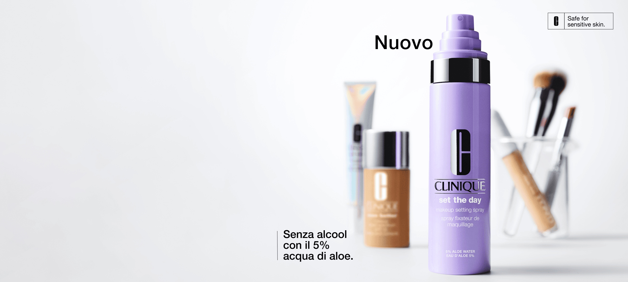 Si fissa con uno spruzzo rinfrescante. Sicuro anche per le pelli sensibili.