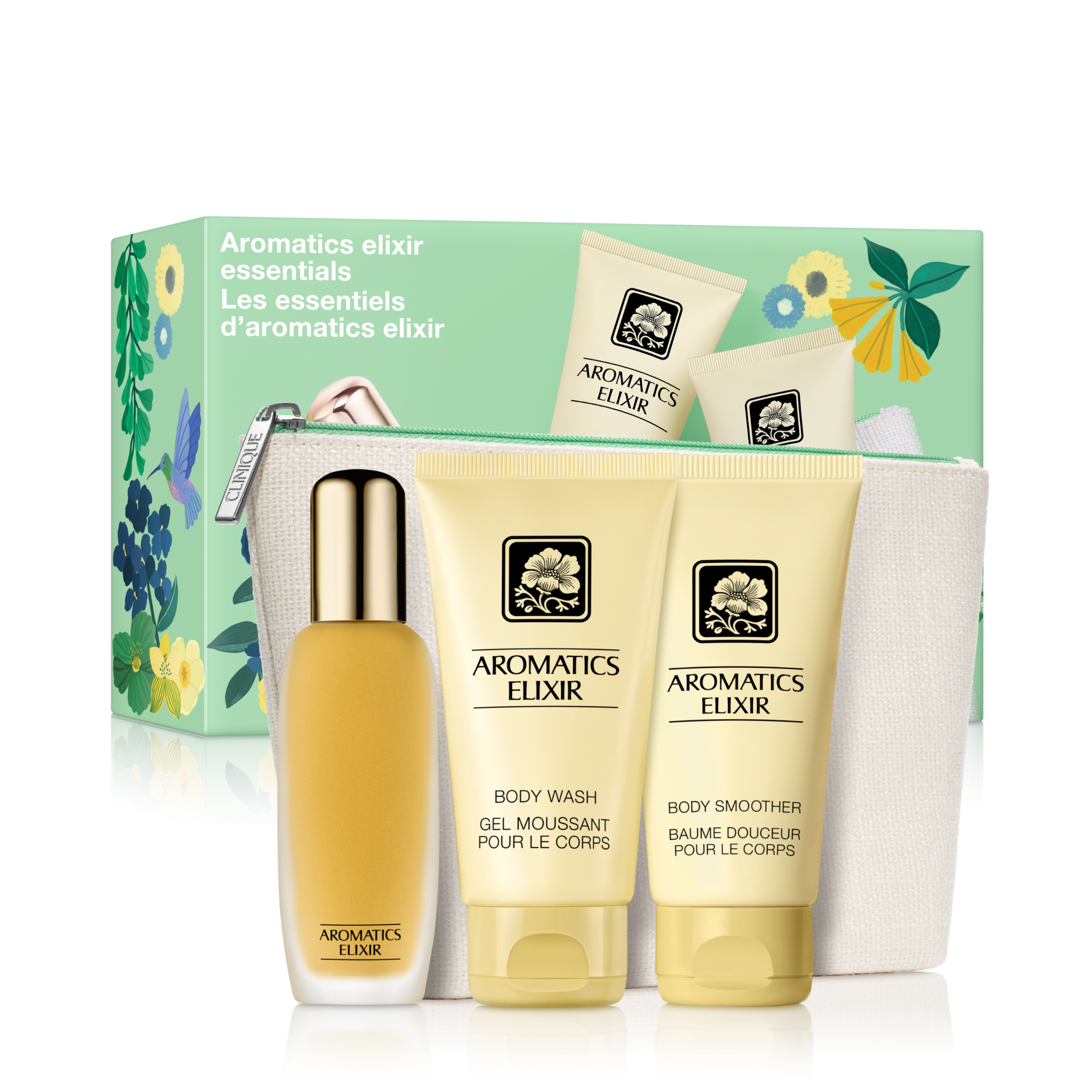 Un trio lussuoso, con l’iconica fragranza floreale chypre di Clinique in un profumo in formato standard, un vellutato latte corpo e un detergente aromatico.